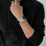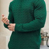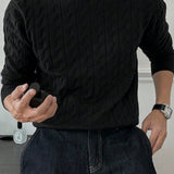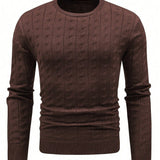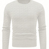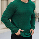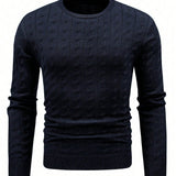 Homme sueter casual de cuello redondo de punto de cable de color liso talla grande para hombres, sueter navideno de otono/invierno para salir