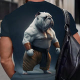 Camiseta de manga corta con estampado de perro de boxeo talla grande para hombre, verano
