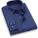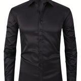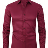 1 pieza camisa casual de manga larga para hombre - hombros rectos con ajuste delgado, antiarrugas, adecuada para negocios, trayectos, reuniones casuales, citas - gran regalo