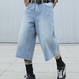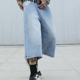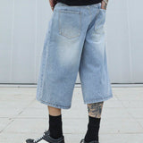 Manfinity hypemode pantalones cortos jeans sin cinturon, talla grande para hombre, con bolsillos laterales lavados