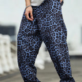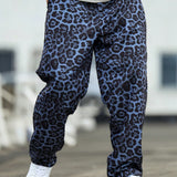 Manfinity legnd pantalones casuales de talla grande con decoracion de bolsillos y estampado de leopardo, pantalones de salir, para regalos a esposo o novio