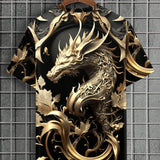 Camiseta de manga corta de talla grande para hombres con estampado de dragon metalico de hierro
