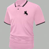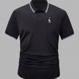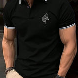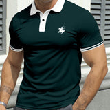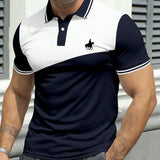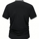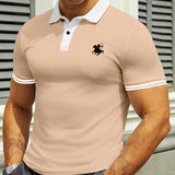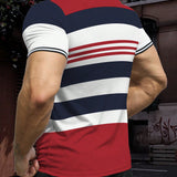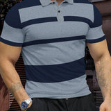 Dauomo camisa polo de manga corta con botones y estampado de rayas para hombre, de verano