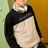 Manfinity sport metrogents sudadera informal con cuello redondo, estampado de letras y parches de colores contrastantes en estilo de novio para hombres