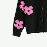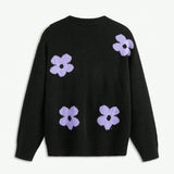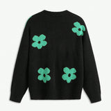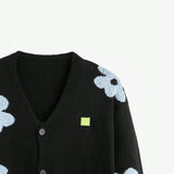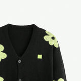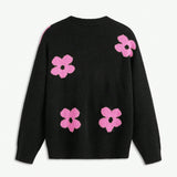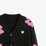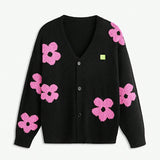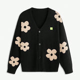Aknotic business casual sueter casual holgado de cuello en v con mangas de murcielago y estampado floral tejido para hombres, cardigan grueso negro para regalo de esposo o novio