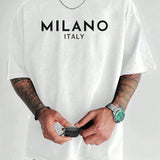 Camiseta de manga corta de seda de leche con grafico en ingles informal para hombres de talla grande