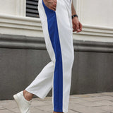 Manfinity homme pantalones informales entallados con bolsillos y contraste de color para hombres de talla grande