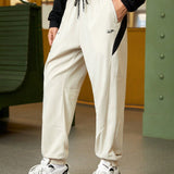 Manfinity sport metrogents pantalones deportivos de estilo novio con cintura con cordon y parches de color contrastante para hombres