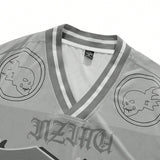 Manfinity homme camiseta de manga corta con cuello en v con estampado de numeros y letras, estilo deportivo para hombre talla grande, verano