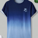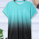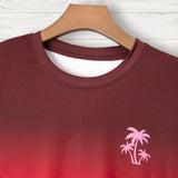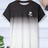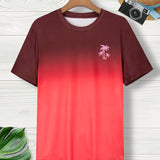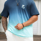 Manfinity rsrt camiseta casual de manga corta con cuello redondo y estampado degradado de palmeras para hombre de talla grande