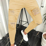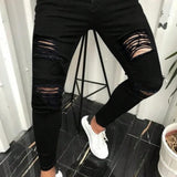 Jeans de mezclilla desgastados nuevos para hombre, pantalones casuales negros elasticos