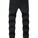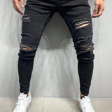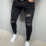 Jeans ajustados de hombre negros rasgados, prendas de calle casuales, jeggings elasticos