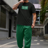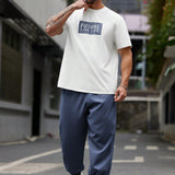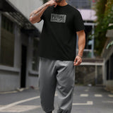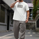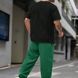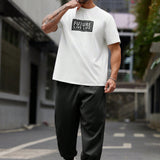 Manfinity homme conjunto de 2 piezas de talla grande para hombre con camiseta de manga corta casual y pantalones con cordon