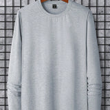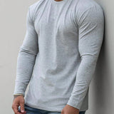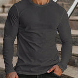 Manfinity homme camiseta casual de manga larga de cuello redondo de unicolor para hombre, otono
