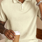 Homme camisa polo casual de manga larga de unicolor con botones adelante para hombres de talla grande, para salir