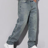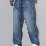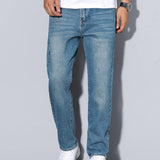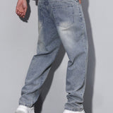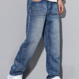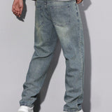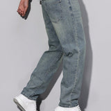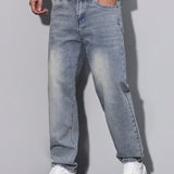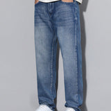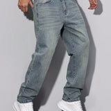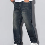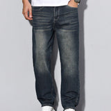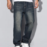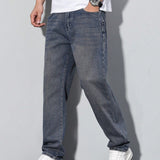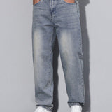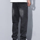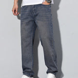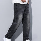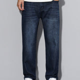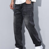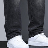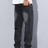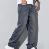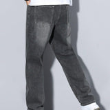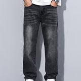 Homme pantalones jeans de moda y minimalistas para hombres, aptos para salidas casuales, pantalones jeans lisos de pernera recta de color gris oscuro lavado estilo cargo, para regalar al esposo o novio