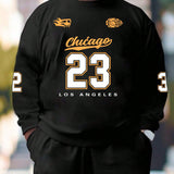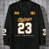 Camiseta casual de manga larga con cuello redondo y estampado de numeros 23 y letras, talla grande para hombres