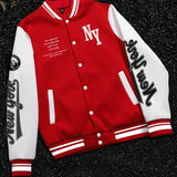 Manfinity sporsity chaqueta casual de beisbol con manga larga, impresion de eslogan y contraste de color para hombre, otono