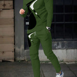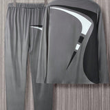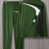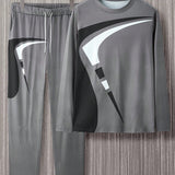 Manfinity homme conjunto de 2 piezas compuesto por camiseta de manga larga con cuello redondo y estampado grafico, y pantalon informal con bolsillo con cordon para hombre