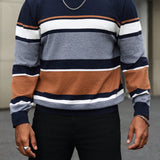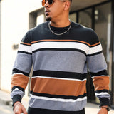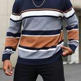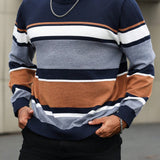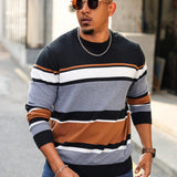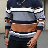 Citygents sueter de manga larga con bloques de color y rayas de contraste para hombres de talla grande, informal para otono e invierno, para salir