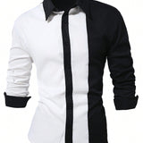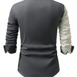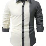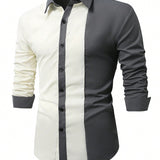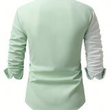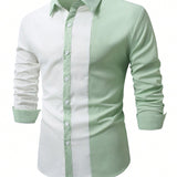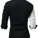 Manfinity homme camisa casual de manga larga minimalista con bloqueo de color y botones para hombre, para el esposo