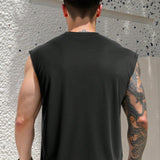 Camiseta de tirantes ancha con estilo de novio, con estampado alpha, estilo americano de chaleco de entrenamiento, estilo atletico, chaleco ajustado y comodo para deportes y actividades al aire libre, con un ligero estiramiento y secado rapido