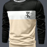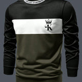 Manfinity homme sudadera casual de manga larga para hombres con estampado de letra y corona en contraste de color, para primavera y otono