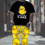 Set de 2 piezas de camiseta de manga corta y pantalones holgados informales con estampado de pato, conjunto deportivo de moda, talla grande