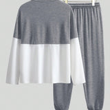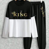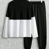 Manfinity homme conjunto de 2 piezas de camisa de manga larga con estampado de letras y pantalones de traje deportivo casual de otono para hombres de color contrastante