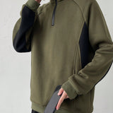 Manfinity hypemode sudadera con buzos con capucha casual de manga raglan de cuarto zip al frente, estilo universitario coreano para otono/invierno, como regalo para amigos, esposo o novio