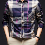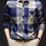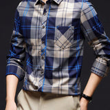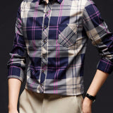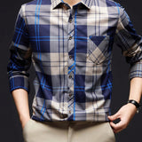 Camisa de manga larga a cuadros para hombre, con cremallera completa, adecuada para uso formal de negocios, para otono/invierno