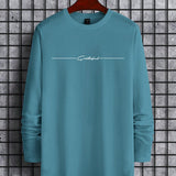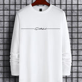 Manfinity homme camisetas casuales de manga larga con cuello redondo y estampado de letras para hombres