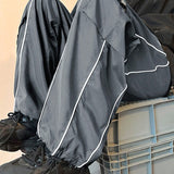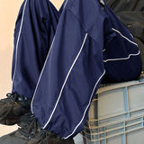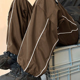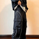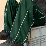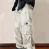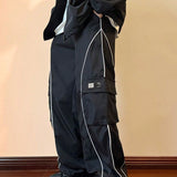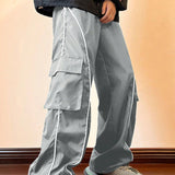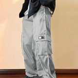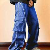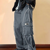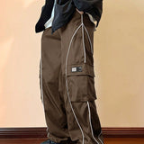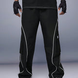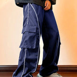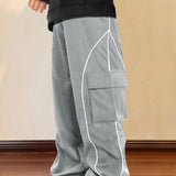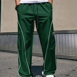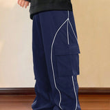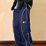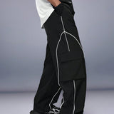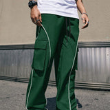 Manfinity emrg pantalones cargo holgados para hombre con parche con letra, ribete de contraste y bolsillo con solapa