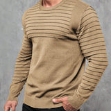 Homme sueter de cuello redondo de unicolor para hombre de talla grande, para uso casual diario, otono/invierno