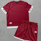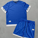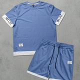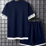 Manfinity homme conjunto de 2 piezas de camiseta de manga corta con cuello redondo y pantalones cortos de color de contraste para hombres de talla grande, informal y diario, de verano