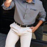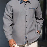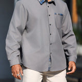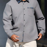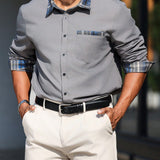 Manfinity casualmax camisa casual de manga larga con parche a cuadros para hombre talla grande, para otono, para salir