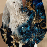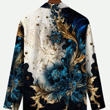 Camisa hawaiana de manga larga con bolsillo, estampa de bloque de color floral retro para hombres de talla grande