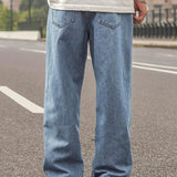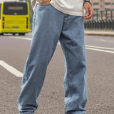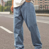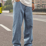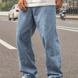 Jeans rectos para hombre con lavado azul claro, jeans holgados para hombre, estilo retro y2k, sencillo y versatil
