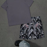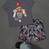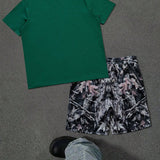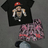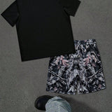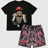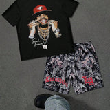 Manfinity emrg conjunto de 2 piezas hombres parte superior casual de manga corta con estampado grafico cuello redondo y shorts