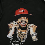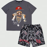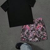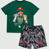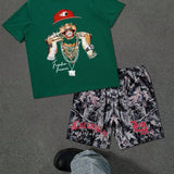 Manfinity emrg conjunto de 2 piezas de talla grande para hombre: camiseta de manga corta con estampado de retrato casual y pantalones cortos, para verano