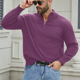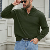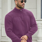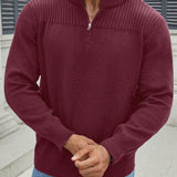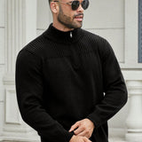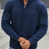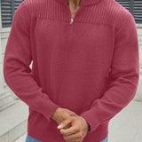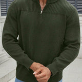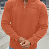 Homme sueter casual de manga larga con cremallera y cuello liso, para hombres de talla grande, para otono/invierno