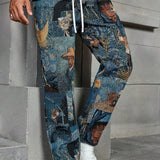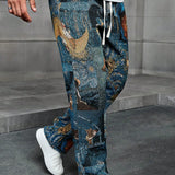 Pantalones casuales de punto con decoracion de pintura de van gogh, de pierna recta y holgada para hombres