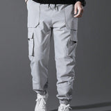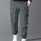 Manfinity homme pantalones jogger casuales para hombres con bolsillos de carga y cordon en la cintura, de unicolor