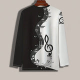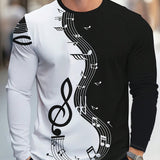 Camiseta de manga larga con cuello redondo y estampado de notas musicales para hombre, ideal para el uso diario y versatil, primavera/otono