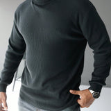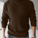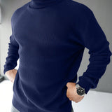 Homme sueter de cuello vuelto sencillo de unicolor para hombres de talla grande, para otono/invierno