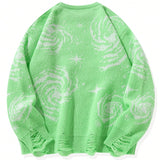 Manfinity sueter de cuello redondo de manga larga para hombres con detalles graficos minimalistas, para uso diario casual