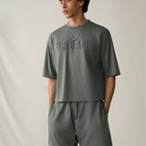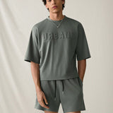 Manfinity urbanchill conjunto de 2 piezas de camiseta de manga larga casual y holgada de punto para hombres + pantalones rectos de cintura elastica