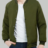 Chaqueta y abrigo casual de manga larga con botones frontales y cuello de beisbol de unicolor para hombre