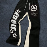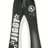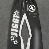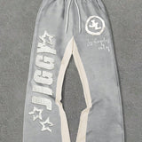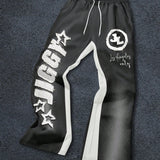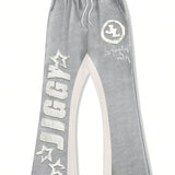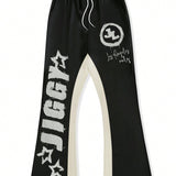 Manfinity emrg pantalones joggers casuales para hombre con estampado grafico de letras y color contrastante, cintura con cordon, pantalones de chandal amplios para salir, vestimenta urbana, regalo para esposo o novio