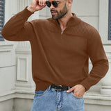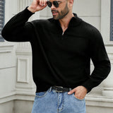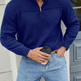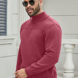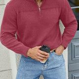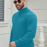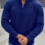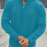 Homme sueter casual de manga larga con cuello de media cremallera y unicolor para hombres de talla grande, otono/invierno